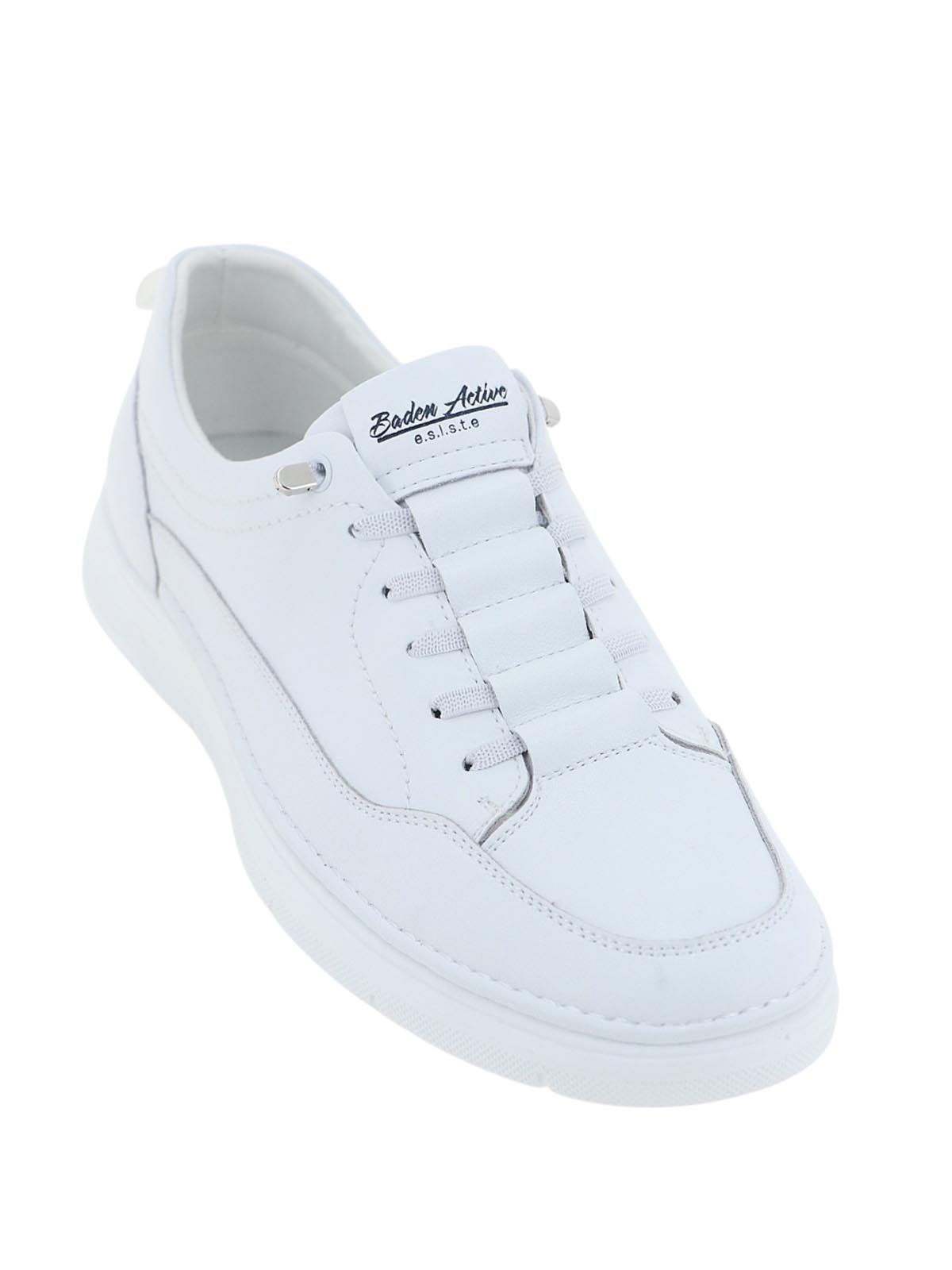 Мужские полуботинки BADEN в повседневном стиле. Модель белого цвета с закрытой эластичной шнуровкой ориентирована на стиль, удобство и легкость.